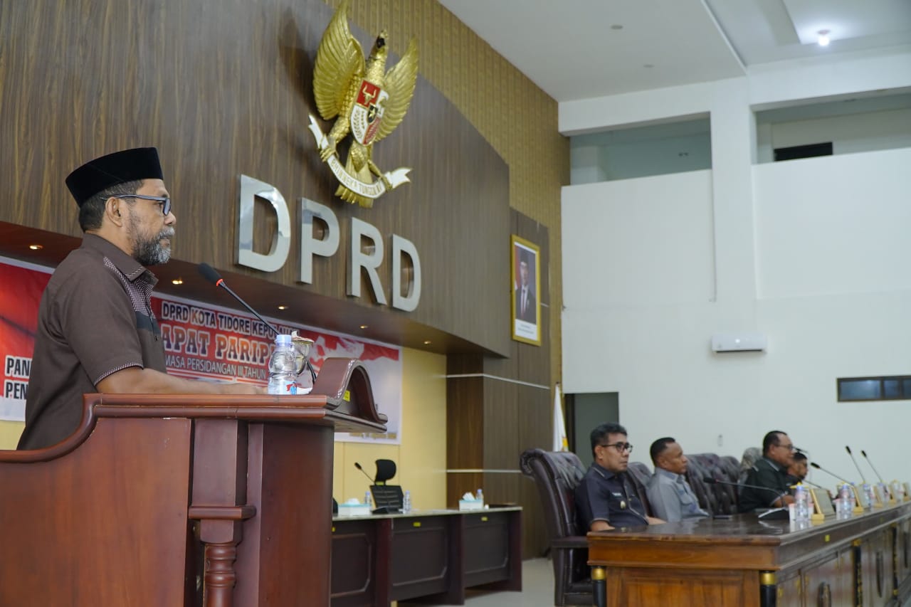 Rapat Paripurna ke-10 masa persidang III tentang penyampaian pandangan umum atas fraksi-fraksi terhadap Ranperda RPJMD Tahun 2025-2025 ini dipimpin langsung oleh Ketua DPRD Kota Tidore Kepulauan H. Ade Kama dan diikuti oleh 19 anggota DPRD dari 25 orang anggota, Sekretaris Daerah Kota Tidore Kepulauan Ismail Dukomalamo, Forkopimda Kota Tidore, Para Asisten Sekda, Staf Ahli Wali Kota, Pimpinan OPD dan Insan Pers. (Red)